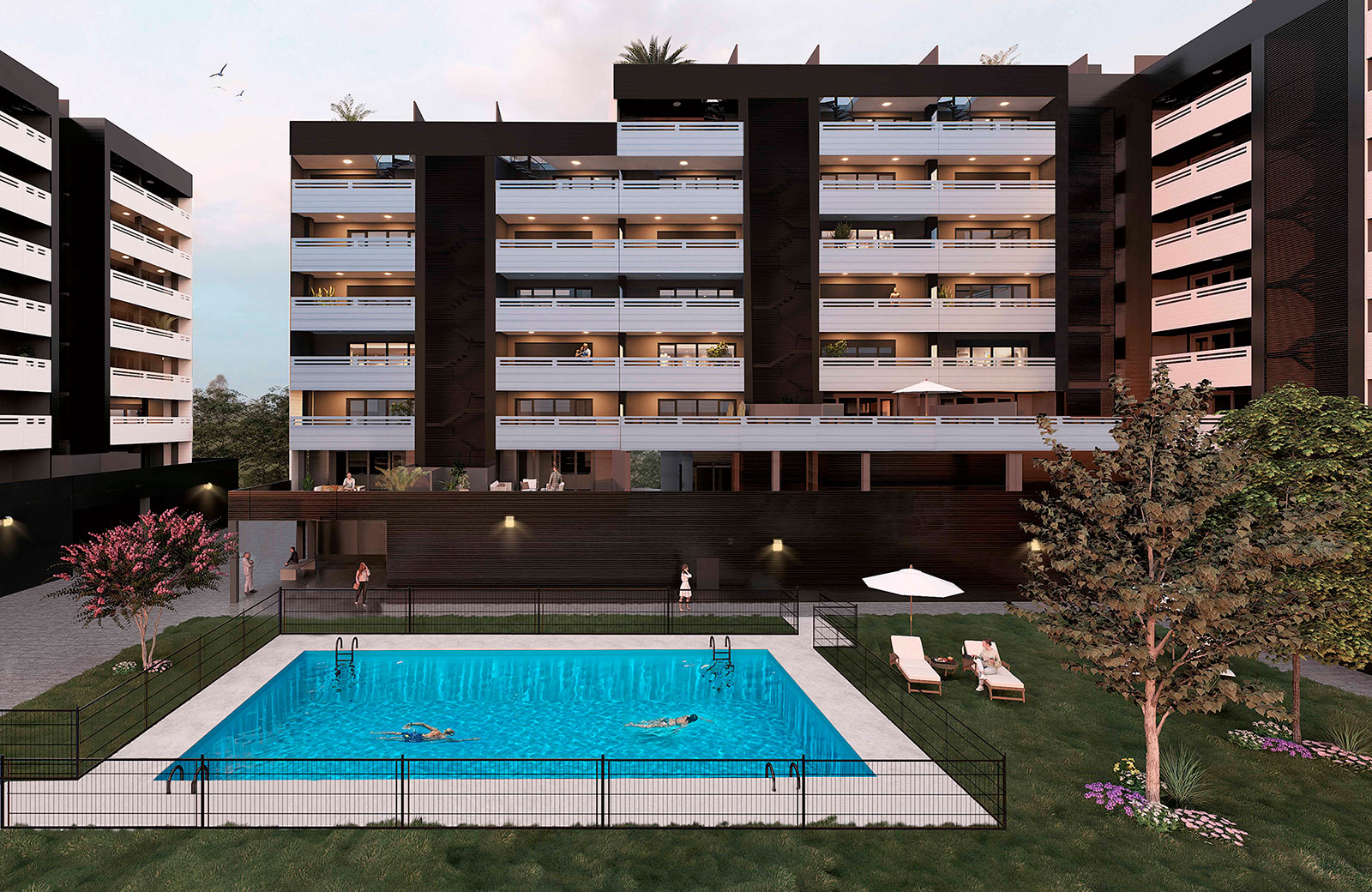 Descubre las 171 viviendas de protección oficial (VPO) de 3 dormitorios, todas equipadas con amplias terrazas que fomentan la vida al aire libre. También hay opciones en planta baja y áticos con solárium, perfectos para disfrutar del sol y la tranquilidad del entorno.